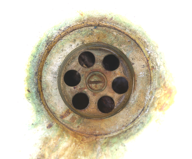 - Gröna beläggningar på kopparrör/-kopplingar, på sanitetsporslin och i kranens strålsamlare.